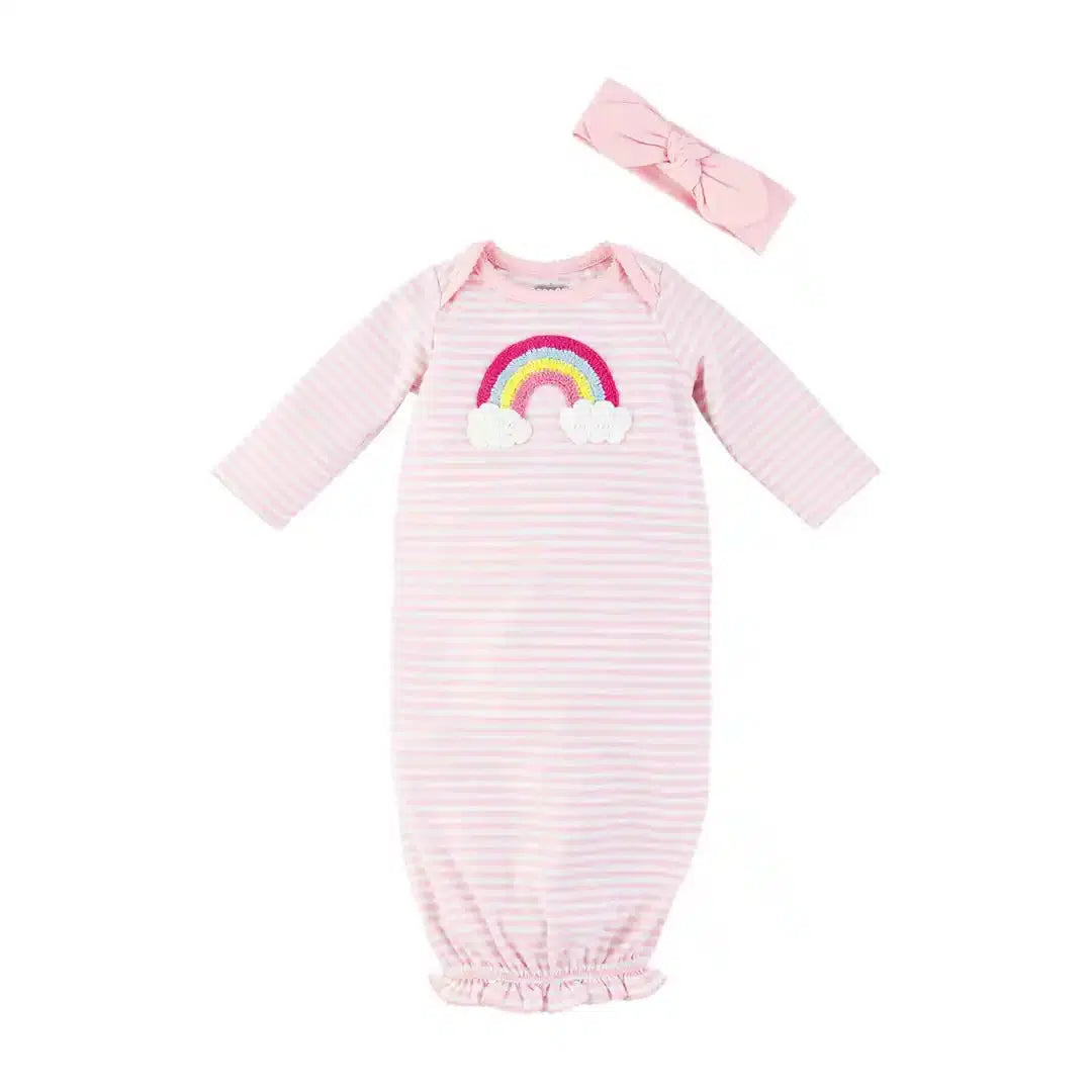 Introduce your little one to a world of color with the Mud Pie Crochet Rainbow Baby Sleeper. Featuring a playful crochet rainbow applique and coordinating headband, this sleeper is perfect for adding a touch of whimsy to your baby's wardrobe. Let your baby be as bright and unique as a rainbow!