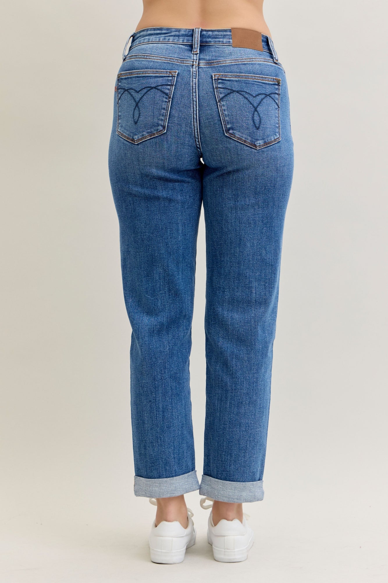 Effortlessly cool and undeniably versatile, these Judy Blue boyfriend jeans deliver that coveted relaxed-fit silhouette with an edge. The mid-rise cut flatters while the releasable cuff lets you customize your look—cuff them up for a polished vibe or leave them down for laid-back ease. Perfect for styling with everything from sneakers to heels, these classic denim essentials are the wardrobe staple you'll reach for again and again.