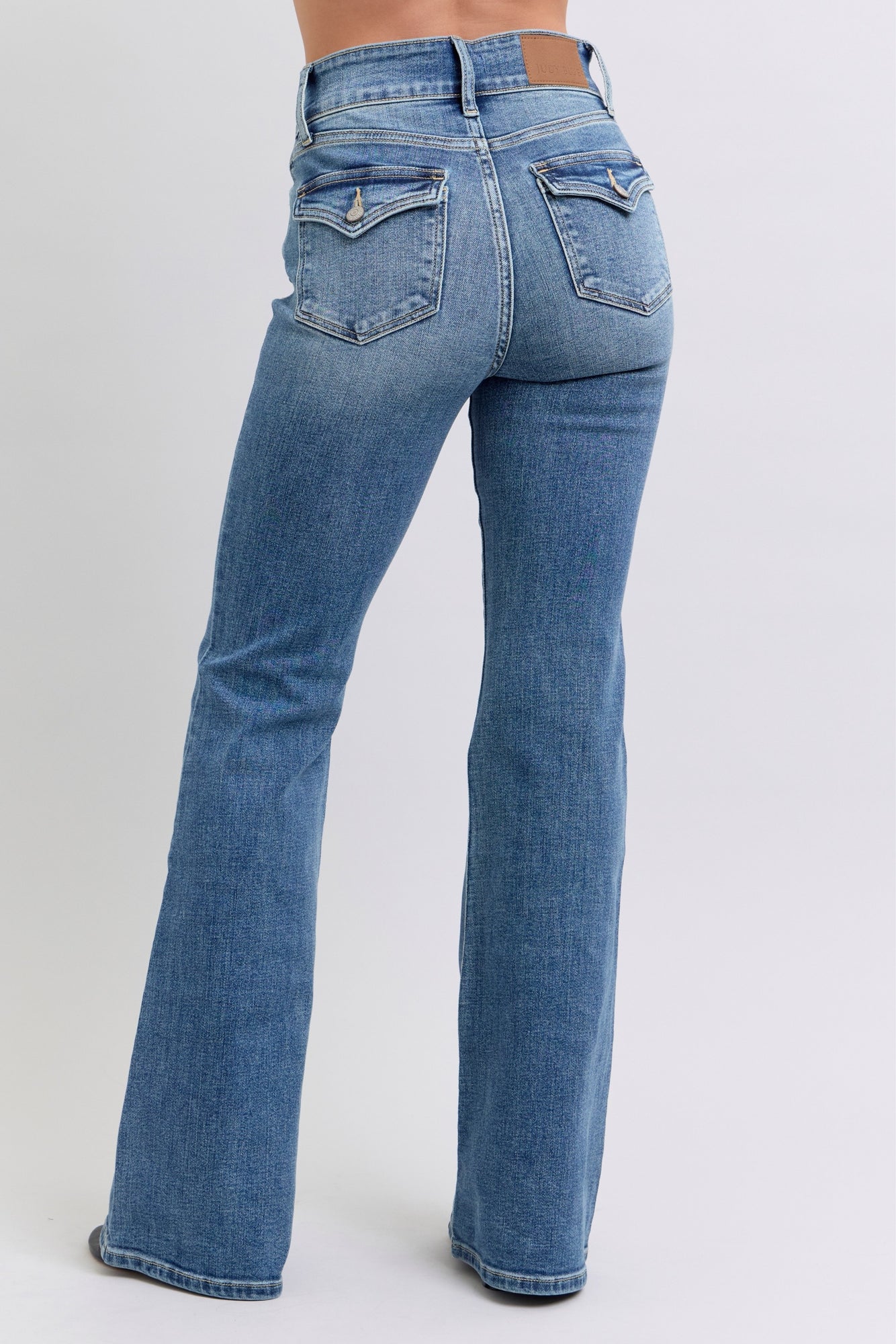 Elevate your denim game with these Judy Blue Tinted Flare Jeans, designed to flatter and turn heads. The high-rise waistband creates a sleek silhouette while the flared leg offers that coveted retro-modern vibe. Crafted with quality construction, these jeans transition seamlessly from casual weekends to night-out ready. A wardrobe essential that brings effortless style to any outfit.