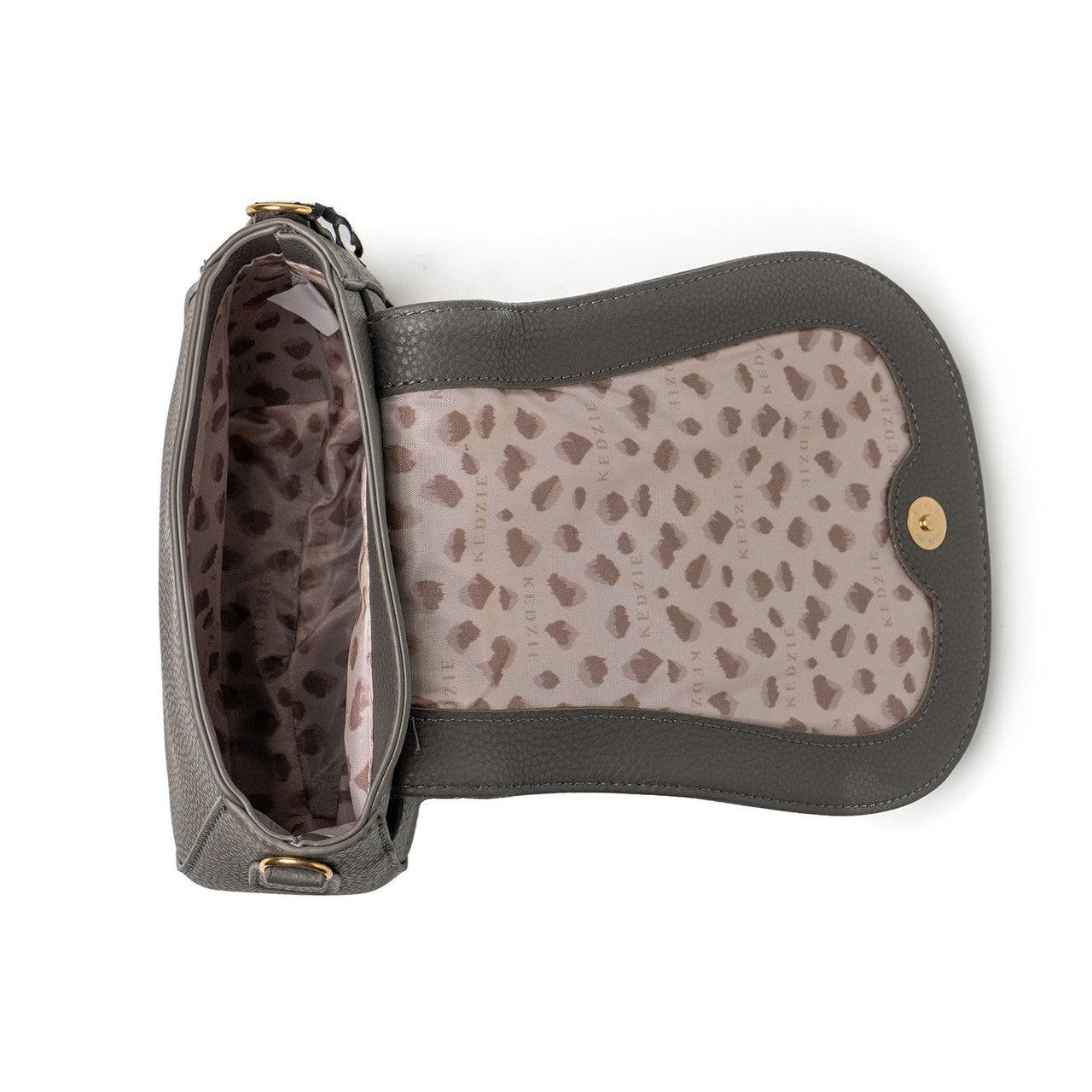 The Kedzie Camden Mini Messenger is a fashionable accessory crafted from premium faux leather and designed to upgrade your daily look. Featuring a compact design and an open main compartment, this messenger bag also features a front zipper pocket and a back slip pocket, making it a practical and comfortable way to carry your essentials with style.