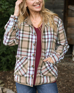 Grace and Lace Corduroy Shacket - Tan/Olive Plaid