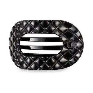 Teleties unique flat clip design is a game changer when it comes to hair! Their versatile clips hold hair securely while allowing you to lie back in comfort. Think car trips, plane rides, yoga. No more bulky clip getting in the way! Plus, their innovative material is practically unbreakable.