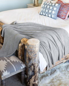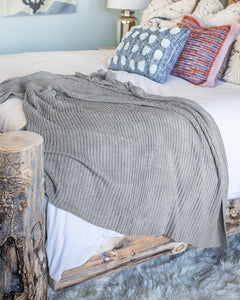 The blanket dreams are made of! The new Plush Bambu Blanket is ready to make all your lounging dreams come true. Made with our signature rayon and bamboo blend for the same warm, cozy, gushy feel you know and love, this blanket shows off a larger size with an extra wide, soft ribbed knit. It's both cool to the touch and gently warm on the body, perfect for any weather. Soft grey color make this perfect for dressing up your sofa, adding texture to your bedding, or gifting to that super special someone.