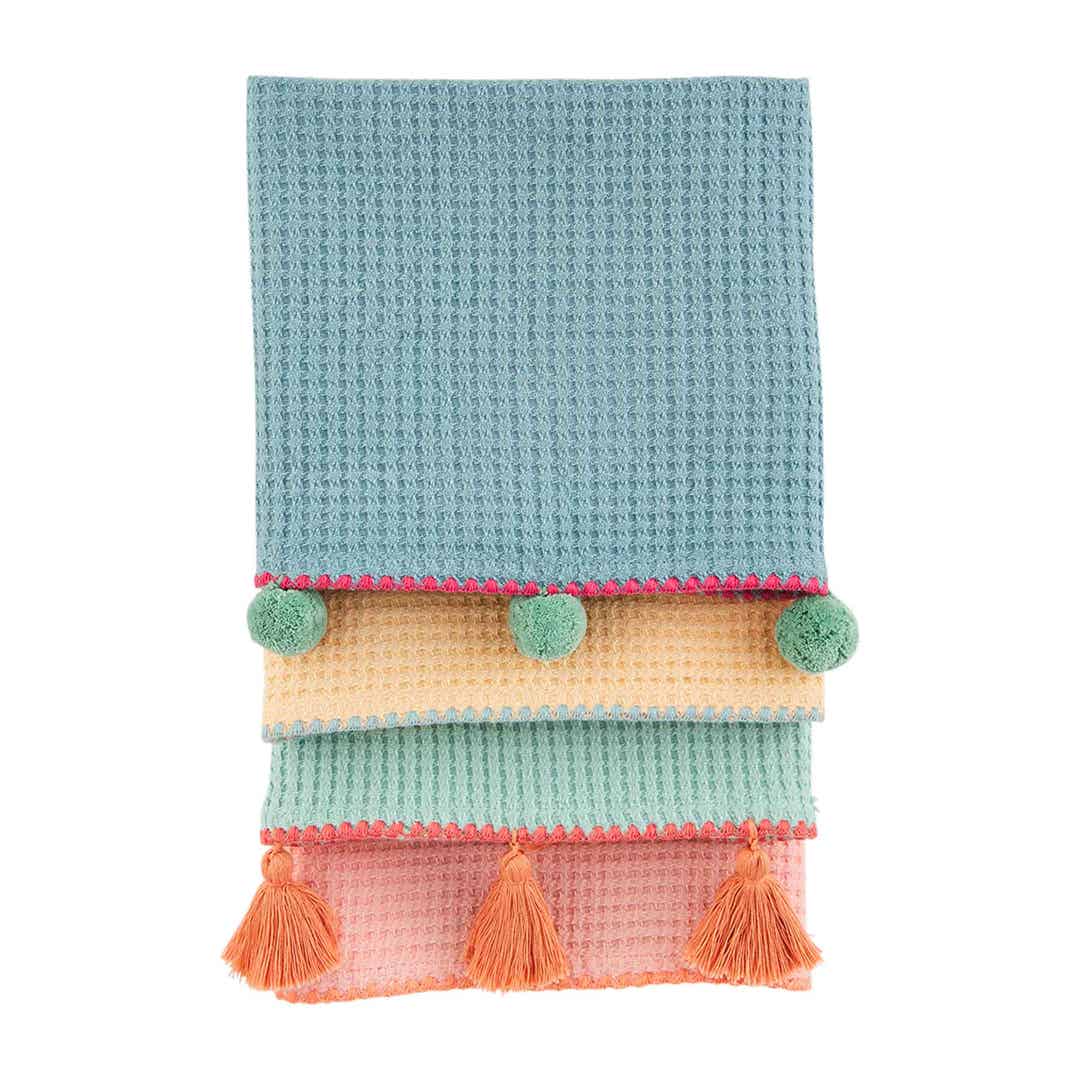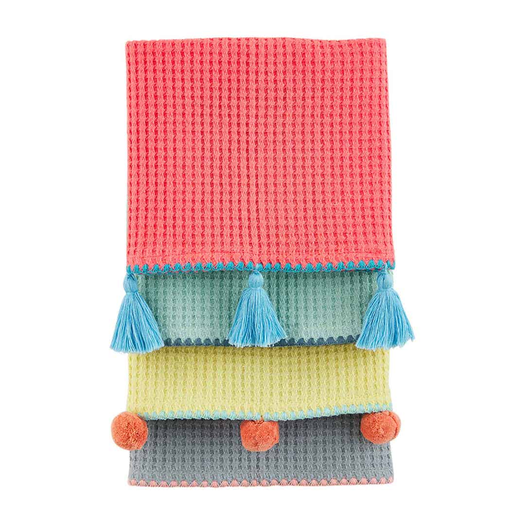 These Mud Pie Colorful Dish Towel set are a work of art! With a waffle texture and embroidered hem, these vibrant and colorful towels are the perfect way to add a pop of pizzazz to your kitchen. Each set features a playful tassel & pom detail on two of the four cotton towels. Get your hands on one of these beauts and make everyday feel like a party.