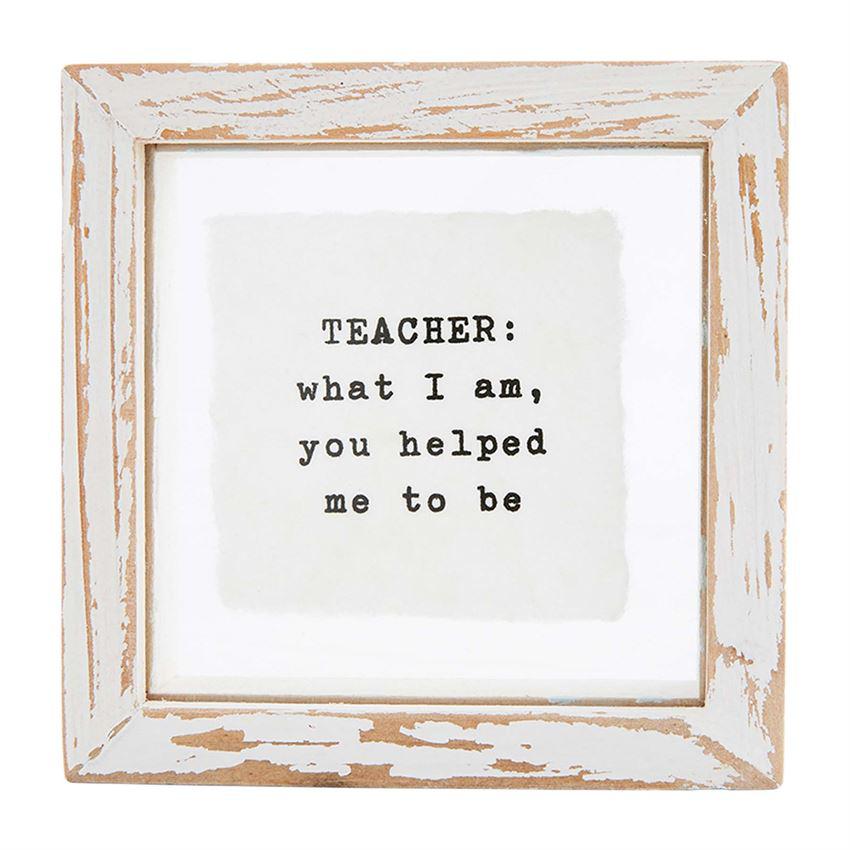 Let your teacher know how thankful you are to have them in your life with this little pressed glass plaque. Rough edged parchment with printed sentiment is showcased in a gorgeous wood frame. Stands free on a desk or shelf. Makes a great appreciation gift!