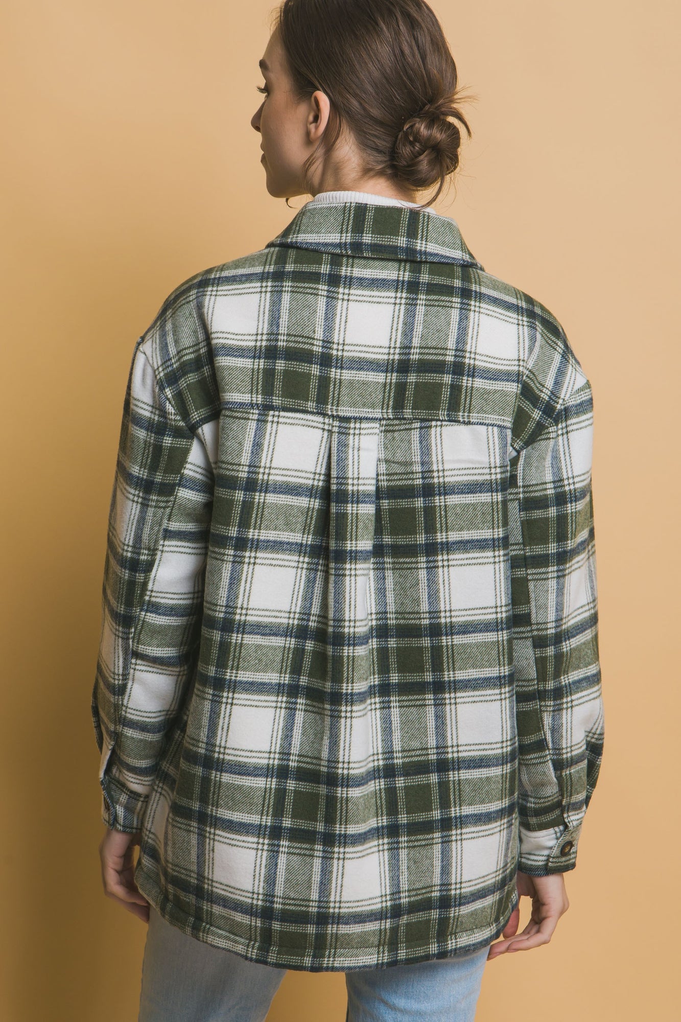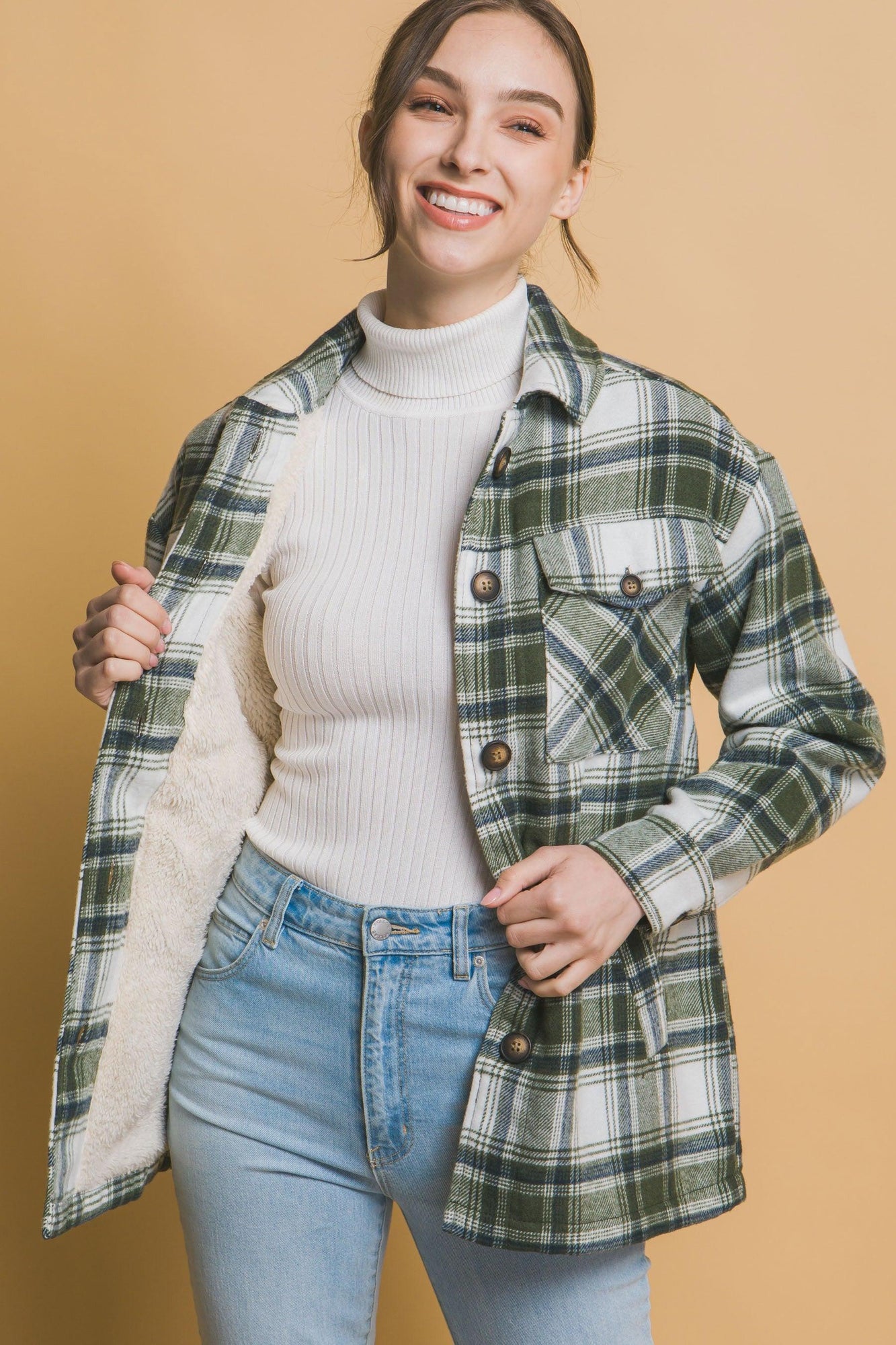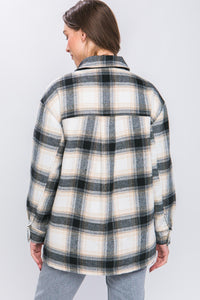 Love Tree Plaid Button Up Jacket with Sherpa Lining