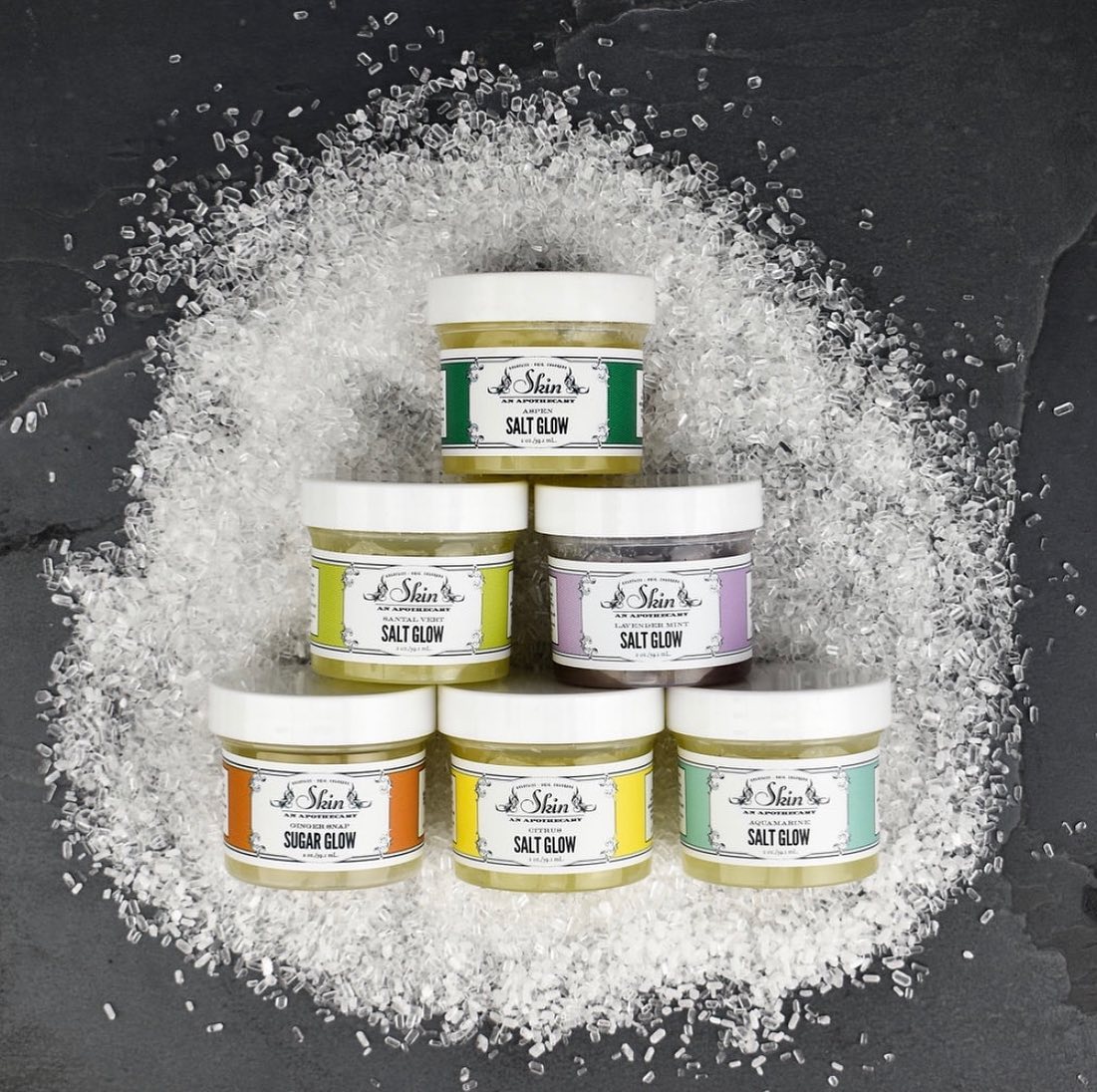 Skin Apothetique is truly a happy blend of modern aesthetic paired with a classic apothecary look for soy body whips, scrubs, skincare and candles. Each of their Aroma Blends has its own label color, which will makes it easy to group and identify each scent. This is a brand that believes in luxurious feeling skin.