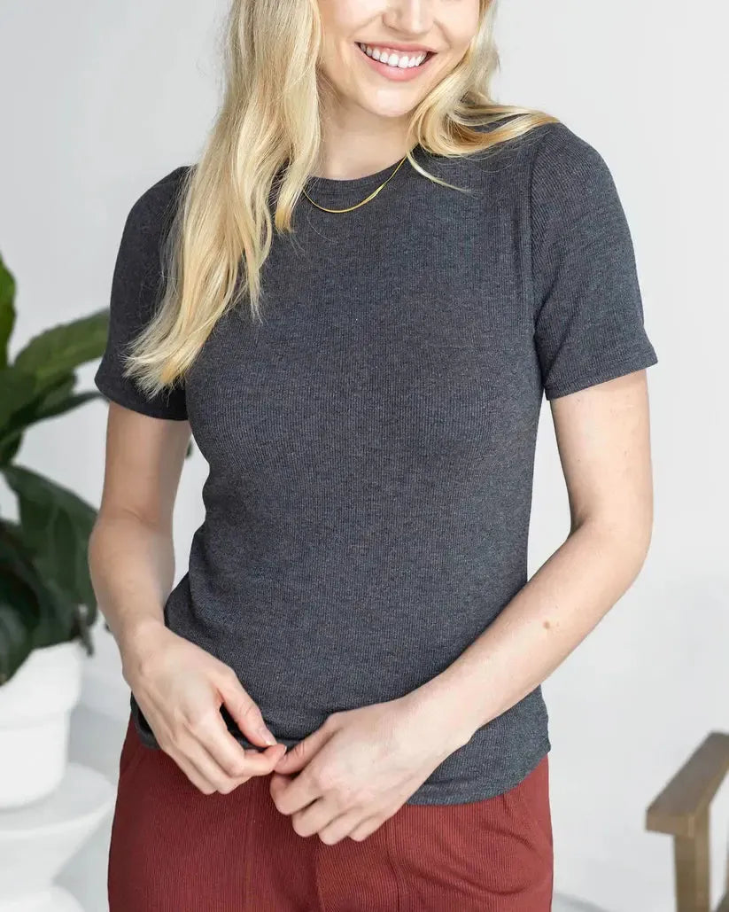 Grace & Lace Essential Ribbed Short Sleeve Fitted Tee