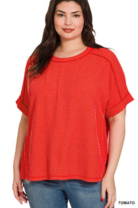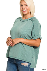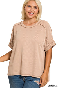 Zenana Ribbed Cuff Sleeve Top - Curvy