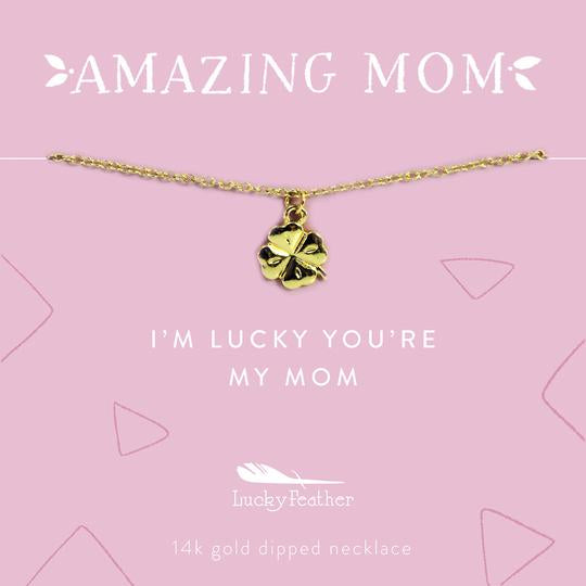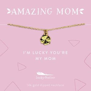 The Lucky Feather Motherhood collection helps you celebrate that amazing women in your life with some extra love on her special day. Simplistic beauty shines in this clover charm necklace. Display card features "I'm Lucky You're My Mom" sentiment, reminding her how loved she is! Perfect for Mother's Day, Birthdays, Christmas, or any day!
