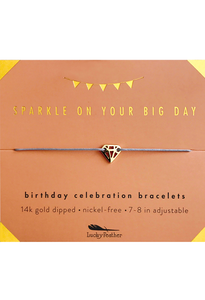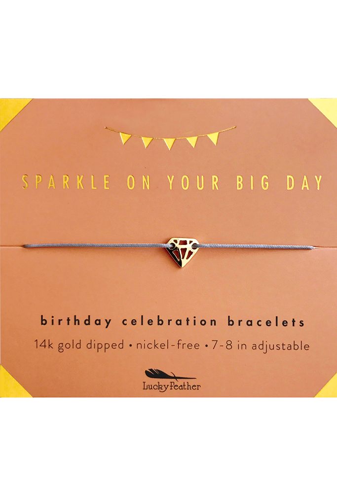 The Lucky Feather Birthday Celebration collection helps you honor that significant person in your life with some extra love on their special day. Simplistic beauty shines in this diamond charm bracelet. Set against a gorgeous display card with gold lettering, the "Sparkle On Your Big Day" sentiment reminds the recipient to shine on their big day! The perfect gift for mom, sister, daughter or dear friend.