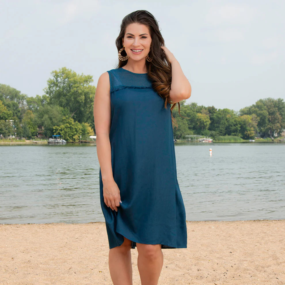 Take your beach look to the next level with the Elsie & Zoey Tahlee Tank Dress/Cover Up. Made from a lightweight woven material, this dress features a flowy design that is perfect for those breezy beach days. The crochet style top and fringe detail add a touch of boho-chic fun. Whether you wear this for a Summer dinner out, or heading to the pool, you're sure to love this sleeveless dress.