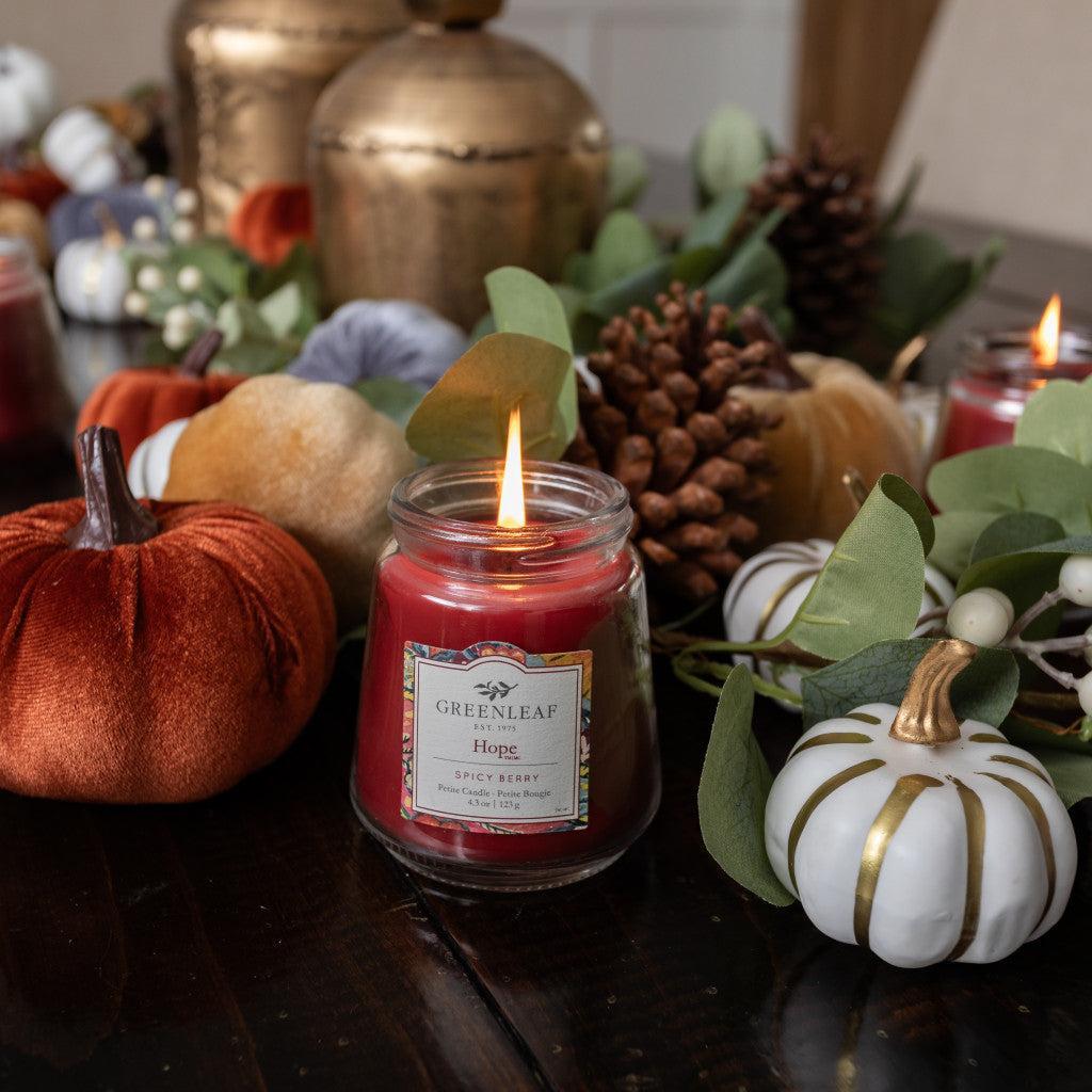 The Greenleaf fragrances you love come in a perfectly sized petite jelly jar candle. Made in the USA with soy-blend wax and a lead-free cotton wick that will burn for up to 40 hours.