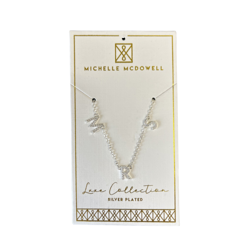 Elevate your bridal style with this stunning silver necklace featuring faux diamond-encrusted "Mrs." lettering. The Michelle McDowell Luxe Mrs. Necklace makes a perfect statement piece for brides, honeymoons, or anytime you want to celebrate your married status with a touch of contemporary glamour.