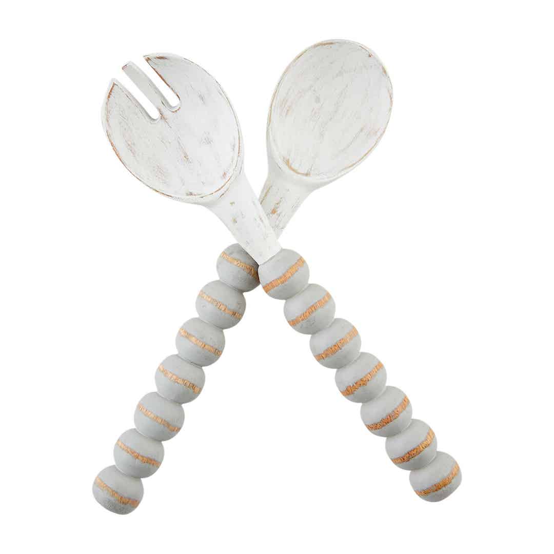 This beaded serving utensil set is a great addition to your kitchen. This set comes with two wood serving utensils with beaded handles. The set may feature unique colorings and markings due to its "distressed" and "rustic" style.