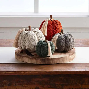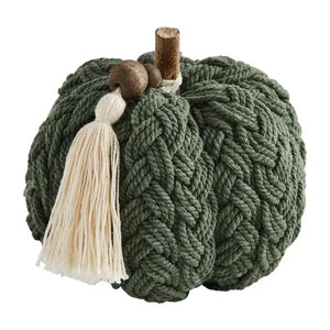 The Mud Pie Braided Rope Pumpkins are a one-of-a-kind piece of home décor. With allover braided rope construction, a natural wood stem, and raffia tassel accent, this unique piece marries sophistication and texture for a truly exclusive look.