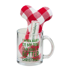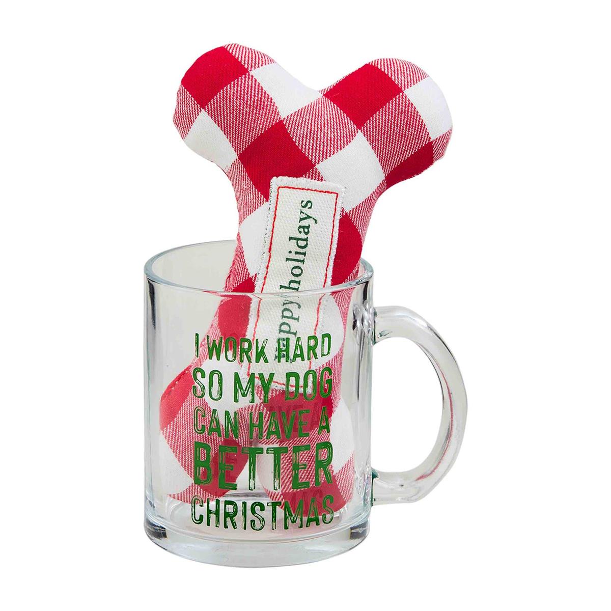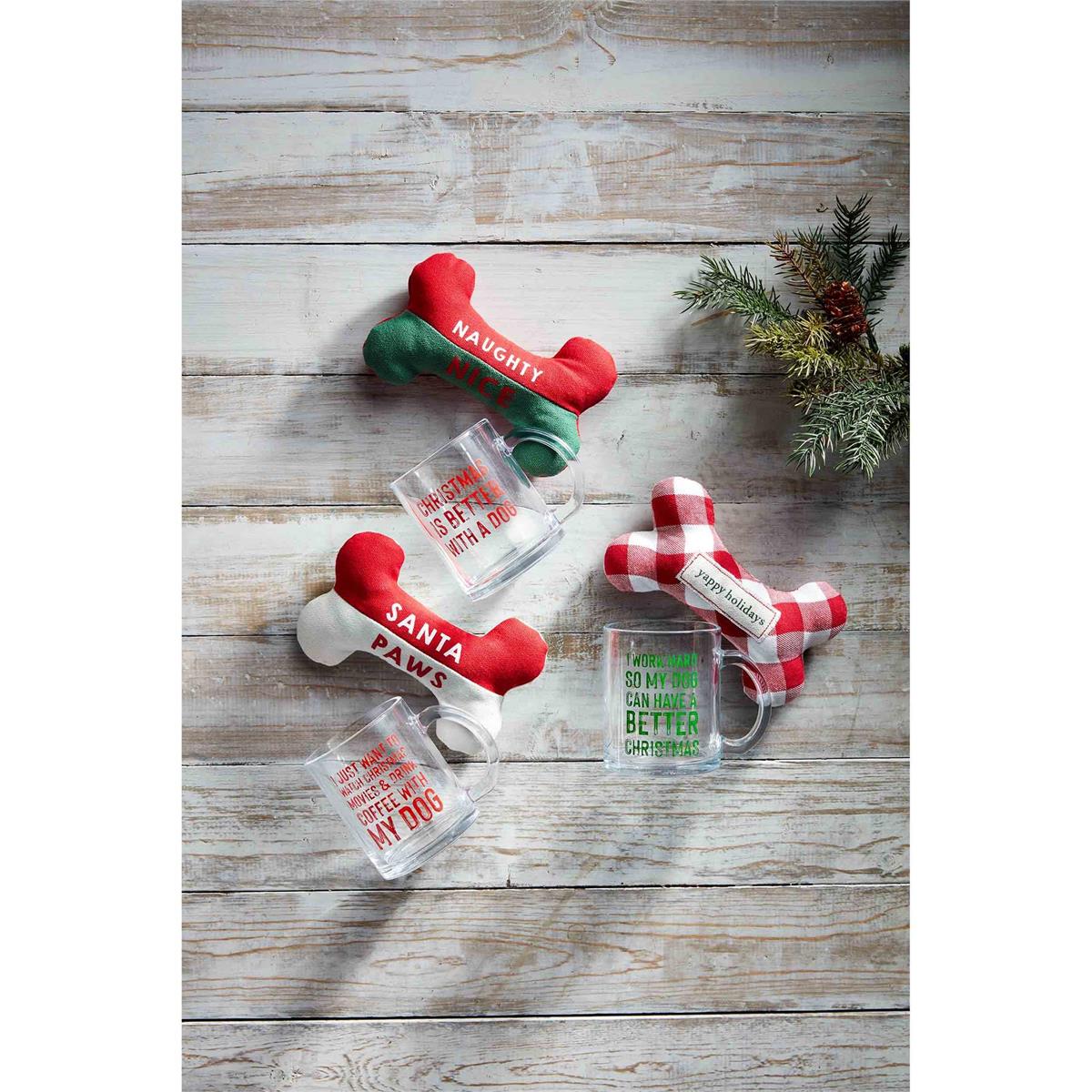 The Mud Pie Christmas Dog Mug & Bone Set is a must for the dog-lover in your life. Each glass mug features a holiday inspired sentiment sharing your love for your pup! Of course the set wouldn't be complete without a little something for your furry friend too. The soft cotton bone squeaker toy makes for a morning of fun for all.