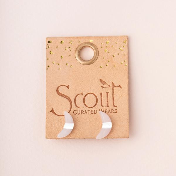 Adorn yourself with celestial-inspired beauty by Scout Curated Wears. Focused on minimalism, these stud earrings feature a 14K gold band on a crescent cut gemstone.