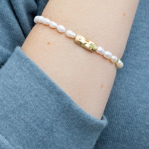 The Scout Curated Wears Pearl Affirmation Bracelet Collection adorns the wearer in the beauty of positivity. Natural rice and baroque pearls, along with organically shaped medallions, mingle on stretch cord for a uniquely sophisticated look.