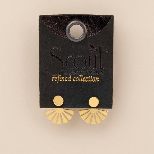 The new Refined Earring Collection by Scout Curated Wears showcases minimalistic designs to compliment your personality. Reflect the brightness of the day with the sophisticated Sunburst Ear Jacket. Created as a removable accent, the sunburst detaches, allowing you to let the simple stud stand alone or you can slip the sunburst accent onto the stud of your choice.