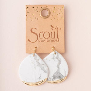 The stone dipped teardrop earring offers a simple design that draws attention to the beauty of the stone and the wearer. This unique look by Scout Curated Wears, is both sophisticated and grounded.